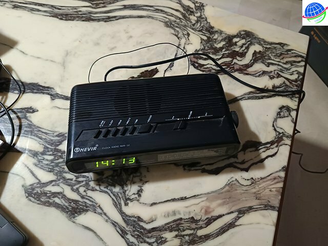 Aparato de radio analogica y reloj digital con alarma.